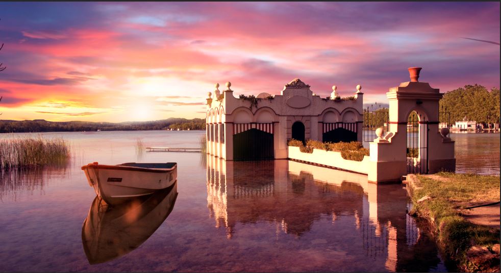 Es el moment de revisar el reflex de la barca, per l’estat de l’aigua no fa falta deformar res ja que era aigua tranquila i llisa, això si el color es tenia de arreglar.