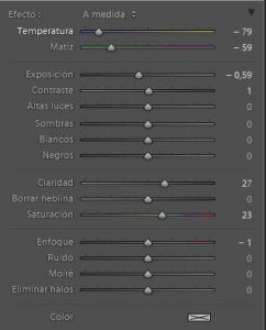 Em pujat la exposició i el contrast per que quedés una mica més il·luminada que la resta i la dominància de color el portem al Groc